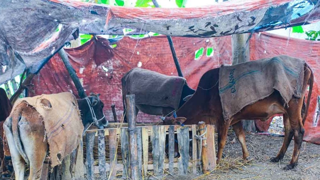 গতকাল সরেজমিন দেখা যায়, কনকনে শীতে উপজেলার বিভিন্ন গ্রামে গবাদিপশু নিয়ে চরম দুর্ভোগে পড়েছেন কৃষক ও খামারিরা। অধিকাংশ গৃহস্থই গরু ও ছাগলকে ঘরের ভেতরে বেঁধে রেখেছেন। অনেকেই পুরনো বস্তা, চট কিংবা পলিথিন দিয়ে গবাদিপশু ঢেকে রাখার চেষ্টা করছেন। কিন্তু ঘন কুয়াশা ও শিশিরে সেগুলো ভিজে যাওয়ায় পশুগুলোকে ঠিকমতো ঢেকে রাখা সম্ভব হচ্ছে না। ঠাণ্ডায় অনেক গবাদিপশু কাহিল হয়ে পড়ছে, কিছু কিছু পশুর মধ্যে সর্দি, জ্বরসহ বিভিন্ন রোগের লক্ষণ দেখা যাচ্ছে। ঠাণ্ডার কারণে পশু চরাতে না পারায় খাদ্য সংকটও দেখা দিয়েছে।