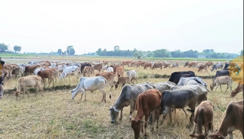রাজশাহীর তানোর উপজেলার জুমার পাড়া এলাকার বিস্তীর্ণ খোলা মাঠে এখন শত শত গাভী ও বাছুরের পালের বিচরণ। চাঁপাইনবাবগঞ্জের শিবগঞ্জ থেকে আসা খামারিরা তাদের বিশাল গরুর পাল নিয়ে তানোরের বিভিন্ন প্রান্তে অবস্থান করছেন। প্রাকৃতিকভাবে গরু লালন-পালন এবং মাঠেই দুধ বিক্রি করে জীবিকা নির্বাহের এই আদি পেশা আজও টিকিয়ে রেখেছেন তারা।